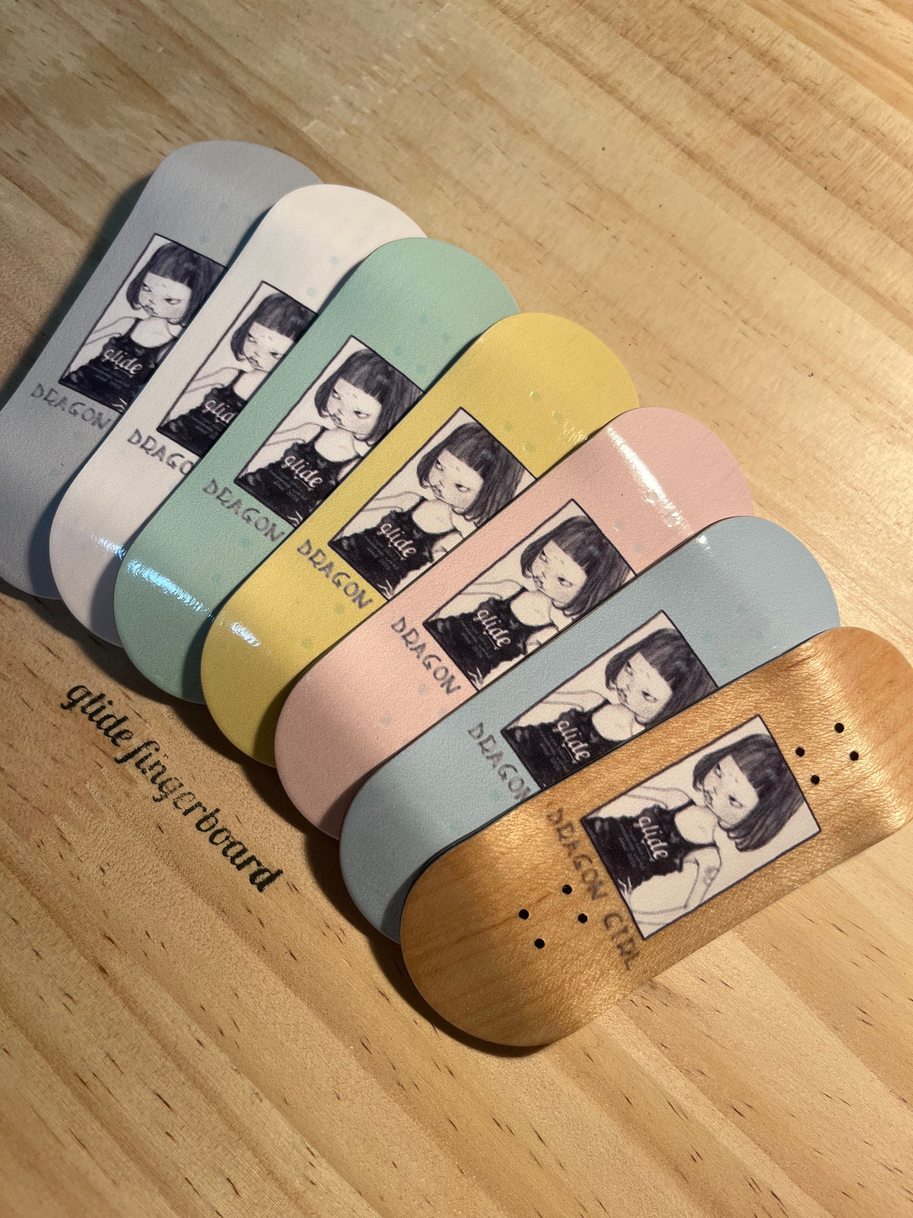 ※RISE シリーズは、デッキプレス工程〜シェイプ工程迄を量産工場にて生産する事によって、品質を厳守しつつも低価格を実現した魅力的なデッキです。Fingerboardをこれから始める方や、ライトユーザーにはコストパフォーマンス的にも最適なデッキです。勿論上級者が使用してもご満足頂けるようにglideが検品チェック、グラフィックの施工、仕上げ工程を行いご満足頂ける商品を責任を持って出荷致します。様々な魅力溢れるグラフィックをお楽しみ頂けたら幸いです。